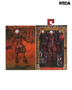 The nightmare-inducing Dancing Clown is back to terrorize Derry—and your shelf—as a fully articulated Ultimate action figure. Standing in 7-inch scale, Pennywise features gruesome, blood-soaked deco and interchangeable heads and hands. Comes in collector-friendly window box packaging with opening front flap.